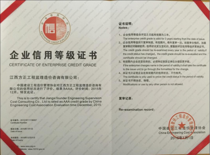 江西方正工程監(jiān)理造價咨詢有限公司于二OO三年五月在南昌市工商行政管理局注冊(注冊號:360100210024211),成立的有限責(zé)任公司,先后取得建設(shè)部及江西省建設(shè)廳頒發(fā)的建設(shè)施工工程造價咨詢企業(yè)資質(zhì)、招投標(biāo)代理機(jī)構(gòu)資質(zhì)、工程監(jiān)理資質(zhì)及江西省財(cái)政廳頒發(fā)的采購代理資質(zhì),是專門從事工業(yè)與民用建筑工程造價咨詢、工程建設(shè)招投標(biāo)代理、工程監(jiān)理及采購代理的公司。